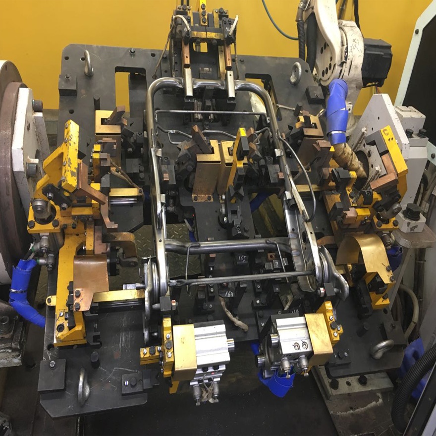 汽車座椅骨架焊接工作站適用于產(chǎn)品的大批量生產(chǎn),且工件焊縫多、位置不集中類型的工件的焊接。該焊接單元配置簡單,布局靈活,可以根據(jù)實際情況進(jìn)行相應(yīng)的布局,雙工位配置,翻轉(zhuǎn)變位機(jī)及工裝夾具,穩(wěn)定和提高焊接質(zhì)量,更好的保證高品質(zhì)焊接,可實現(xiàn)該系統(tǒng)的效率最大化。另外本系統(tǒng)設(shè)計適應(yīng)兩班工作制,每班工作時間8小時,并且設(shè)備滿足24小時三班連續(xù)作業(yè)工作能力。