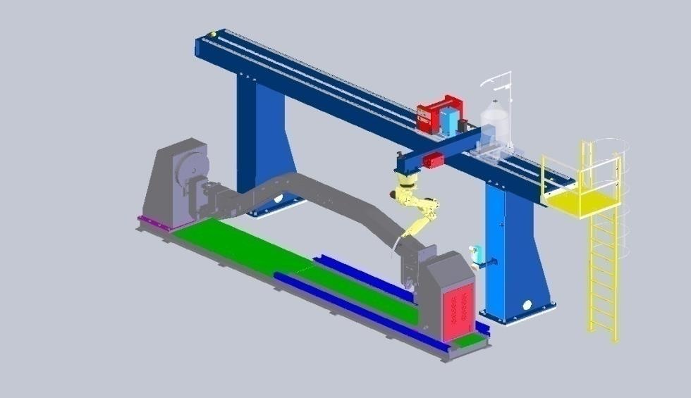 平地機機架結構焊接工作站,采用機器人吊裝和移動滑臺的形式,除了對通用焊接機器人可靠、準確、高效要求之外,在工作站的整體框架、設備的機械傳動、整體控制精度、焊接質量在線控制、與周邊設備、環境的協調等方面做出了全面的智能化調整。機器人行走系統的加入,使機器人能夠在特定的路線上移動,完成對平地機機架結構件的焊接作業,擴大了機器人的作業半徑。另外,配備焊縫尋位軟件、焊接跟蹤軟件,使該工作站成為一套可以完整實現高效自動化焊接的獨立焊接系統。產品參數: