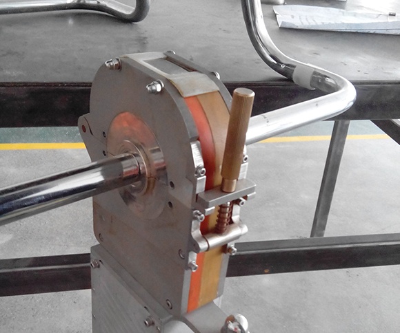 管管對接工裝由夾緊裝置,氣動升降裝置,彈性自適應(yīng)裝置,橫向調(diào)整裝置,以及啟動控制系統(tǒng)五部分組成。適用夾緊管徑范圍16-36mm之間。工作時,由工人雙手持續(xù)要焊接的不銹鋼管在夾緊工裝的V型塊上對接,然后壓緊工件。氣動升降氣缸升起焊接機頭,使機頭副鉗口的定位圓與管子貼合定位,由工人通過彈簧自適應(yīng)裝置調(diào)整機頭上鎢極位置,使之與管管對接縫處正對,然后壓緊機頭上壓緊蓋,啟動焊接。焊接完成后,打開機頭,機頭下降,松開夾具,送出工件。