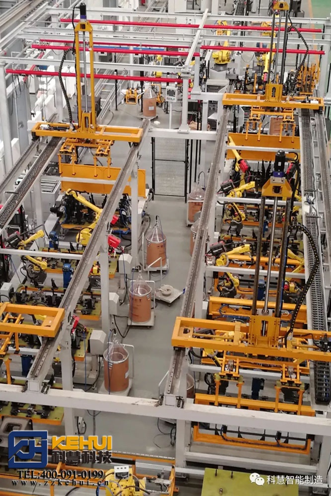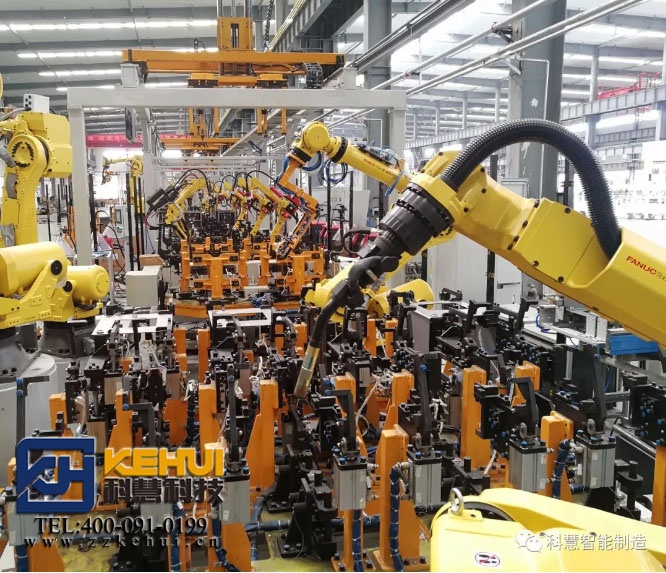 由科慧科技設計生產的民用小型鍋爐爐體自動化焊接生產線正在進行全面調試,該項目運用45臺工業機器人、10套移載機、30套伺服變位機及全線自動化物流輸送,實現了年產30萬臺爐體產量。從板材開卷、沖壓成型、焊接、檢測等工序,實現了從原材料到成品的全自動化過程,可視化的操作系統可實現線體集中控制及線體狀態監測。