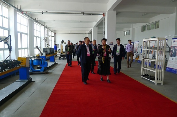科慧科技董事長陳志宏女士帶領島親參觀機器人工作站并詳細講解
